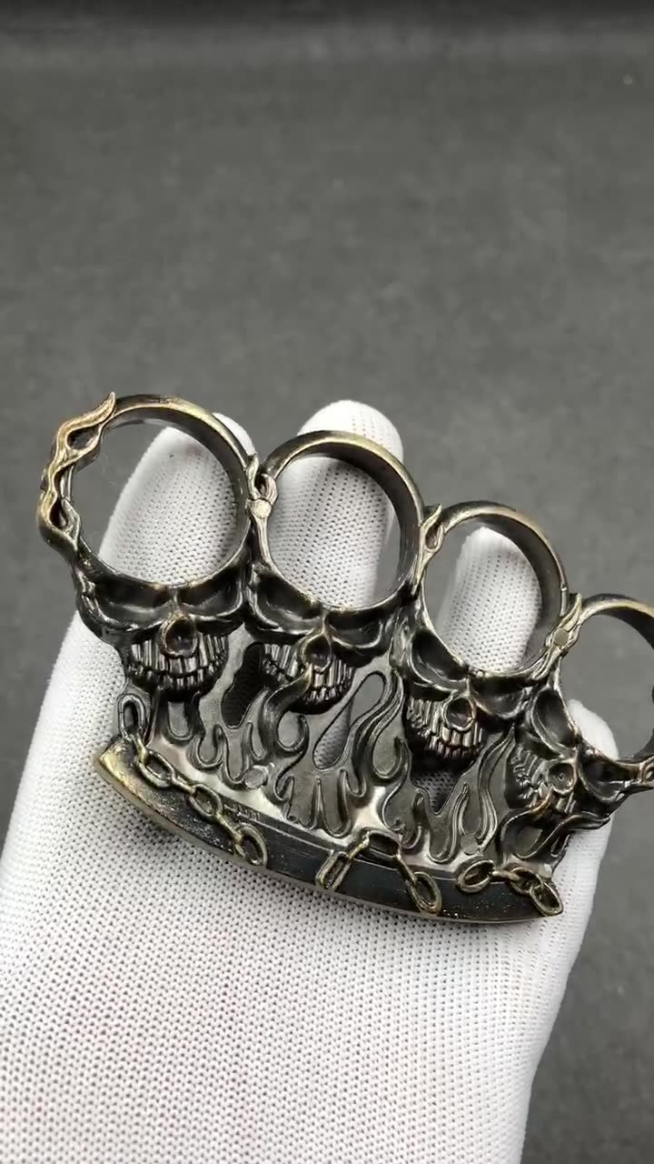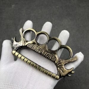 Material: zinc alloy (the knife is ordinary 45# tool steel, with electroplating treatment on the surface)Size: 11.8cm in total length when opened (see detailed picture, the size is measured manually, if there is any deviation, please refer to the actual situation)Blade length: 3.6cm Whether it is sharpened: not sharpenedWeight: about 152 gramsPackaging: neutral transparent OPP bagColor: black, silver gray, brass, bronze silverFunction: suitable for martial arts fighting defense and life-saving, almost no special training is required to master it. Suitable for outdoor travel, self-driving travel equipment, emergency first aid in critical situations, it is a very practical product for home travelPrecautions: The knife is not sharpened and needs to be sharpened by yourself. The knife is very small and is only suitable for emergency use. The knife has no lock buckle, please use the knife alone after opening. You need to close the knife before you can grasp and use the fist buckle (to avoid cutting yourself)Remarks: The surface of the product is electroplated. The black one is spray-coated. There will inevitably be slight scratches and mold marks on the surface of metal products, as well as polishing marks. Please be careful if you mind! There will be contact marks on the inner edge of one of the finger holes during factory electroplating and black spray-coating. Please be aware!Bracelet d’arts martiaux La Belle au Bois Dormant, poing américain à quatre doigts