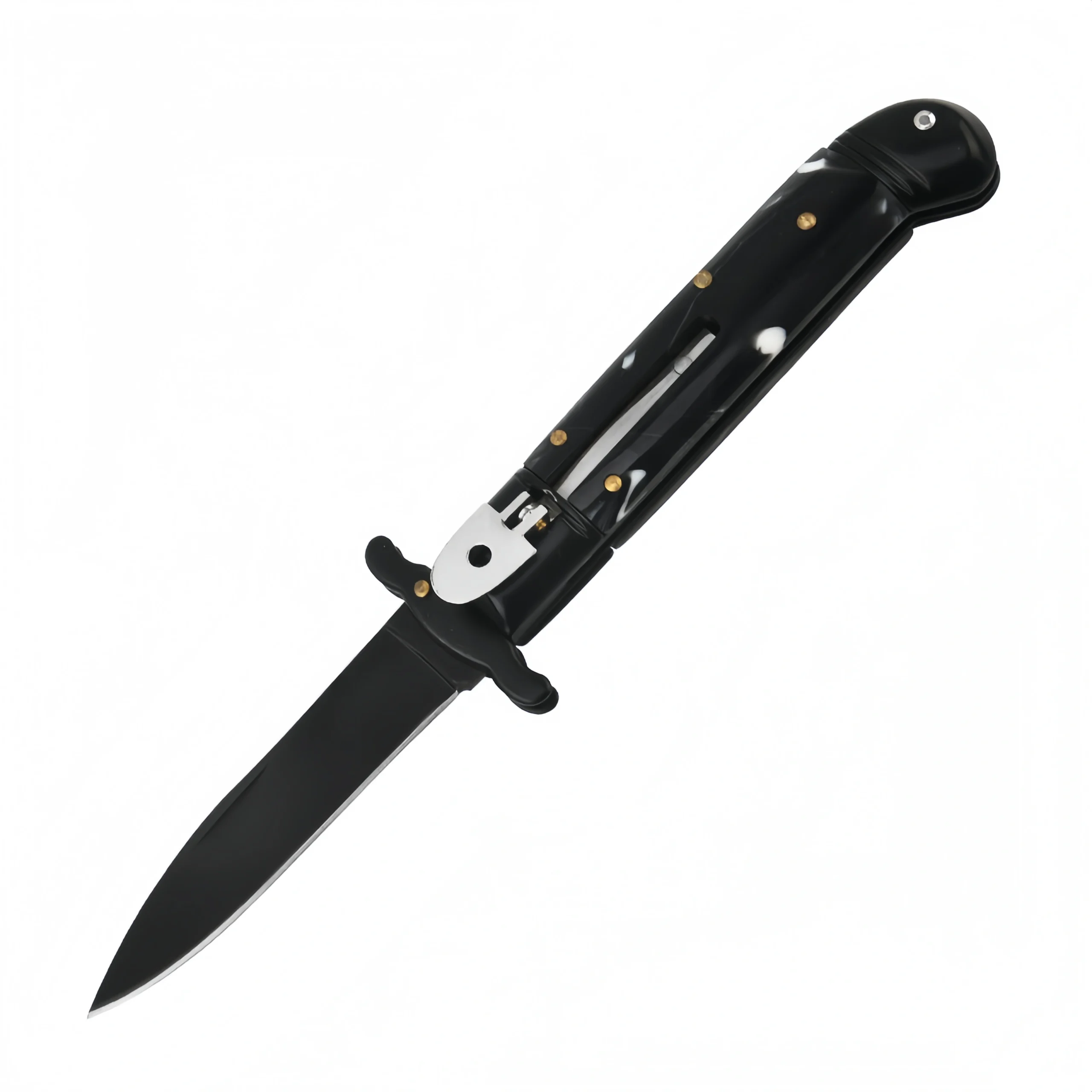 8.75 Inch Black Italian Stiletto Switch Pocket Knife Black Pearl